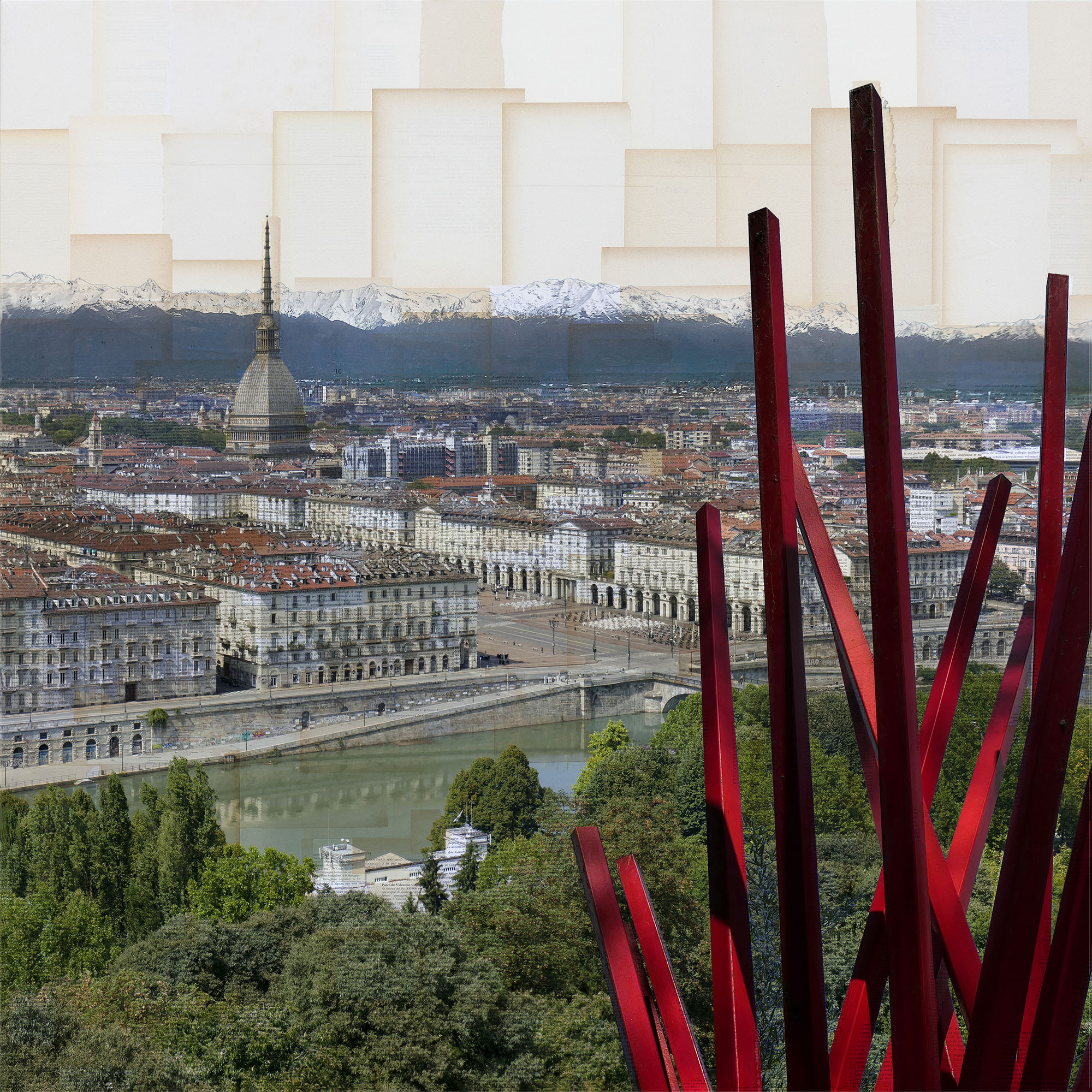 stampa su collage di pagine di libri d'epoca